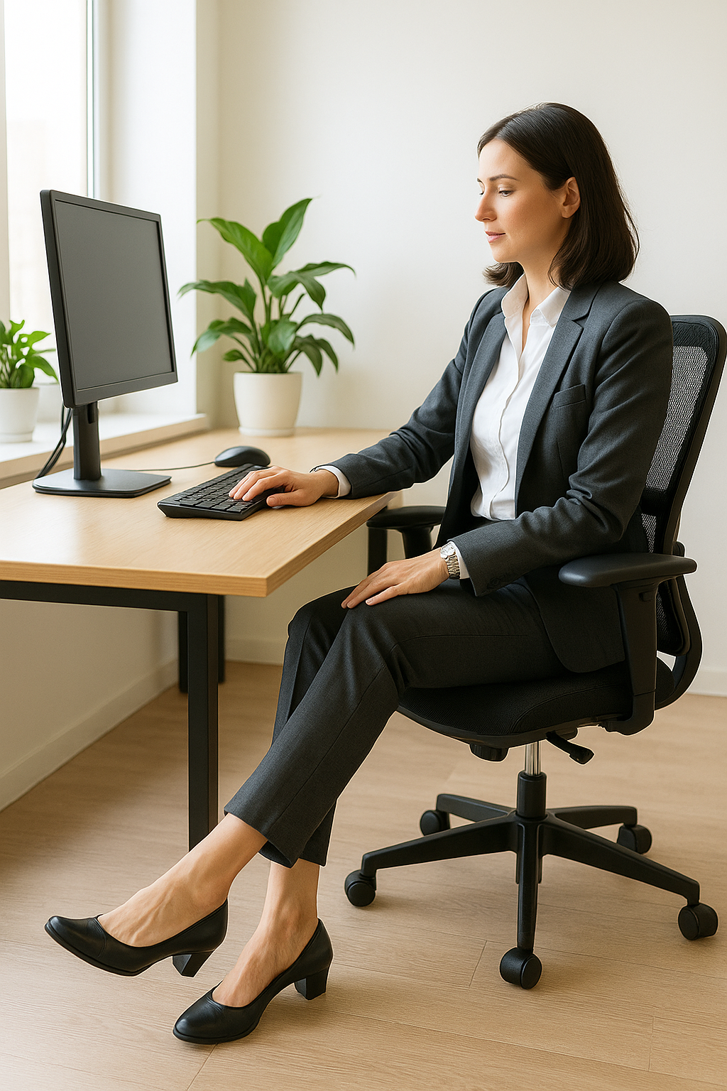 의자에 앉은 상태에서도 다양한 마이크로 무브를 실천할 수 있습니다. 각 동작은 업무나 일상 활동을 방해하지 않으면서도 지속적인 근육 활성화와 칼로리 소모를 유도합니다.