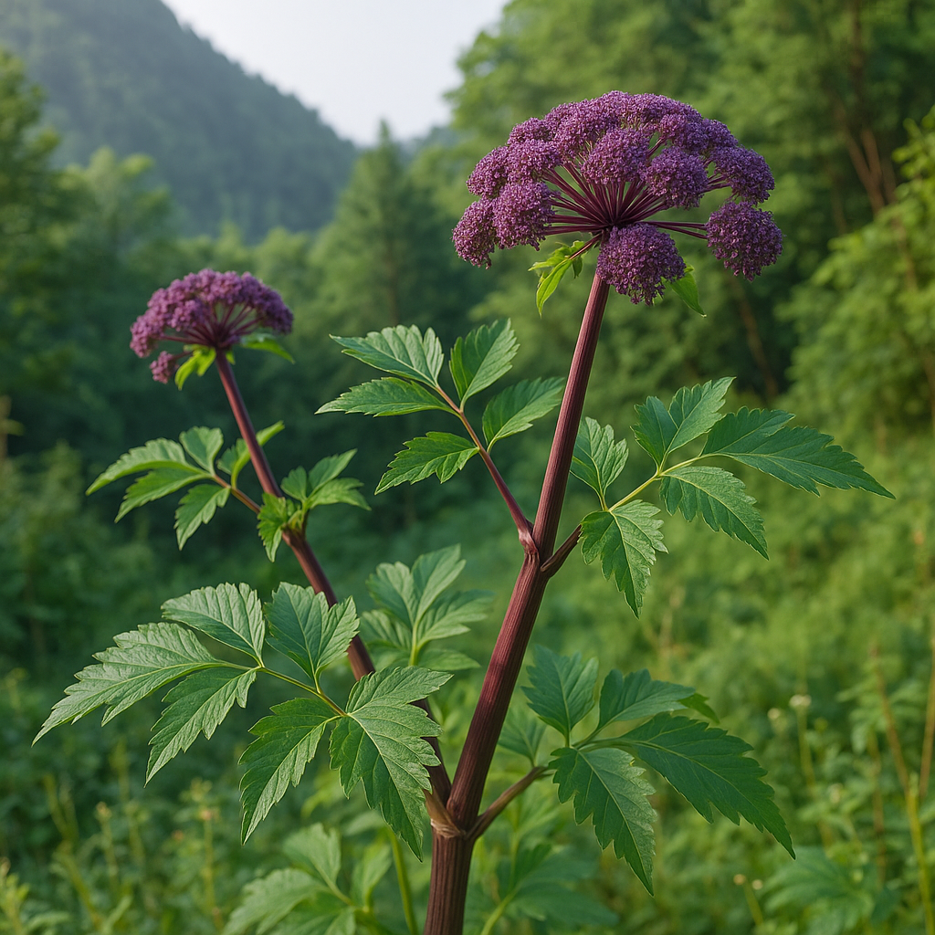 - 참당귀 (토당귀, Angelica gigas): 한국이 원산지인 자생종으로, 강원도와 충북의 고랭지에서 주로 재배됩니다. 국내 재배량의 약 90%를 차지하며, 한약재로 주로 사용됩니다.