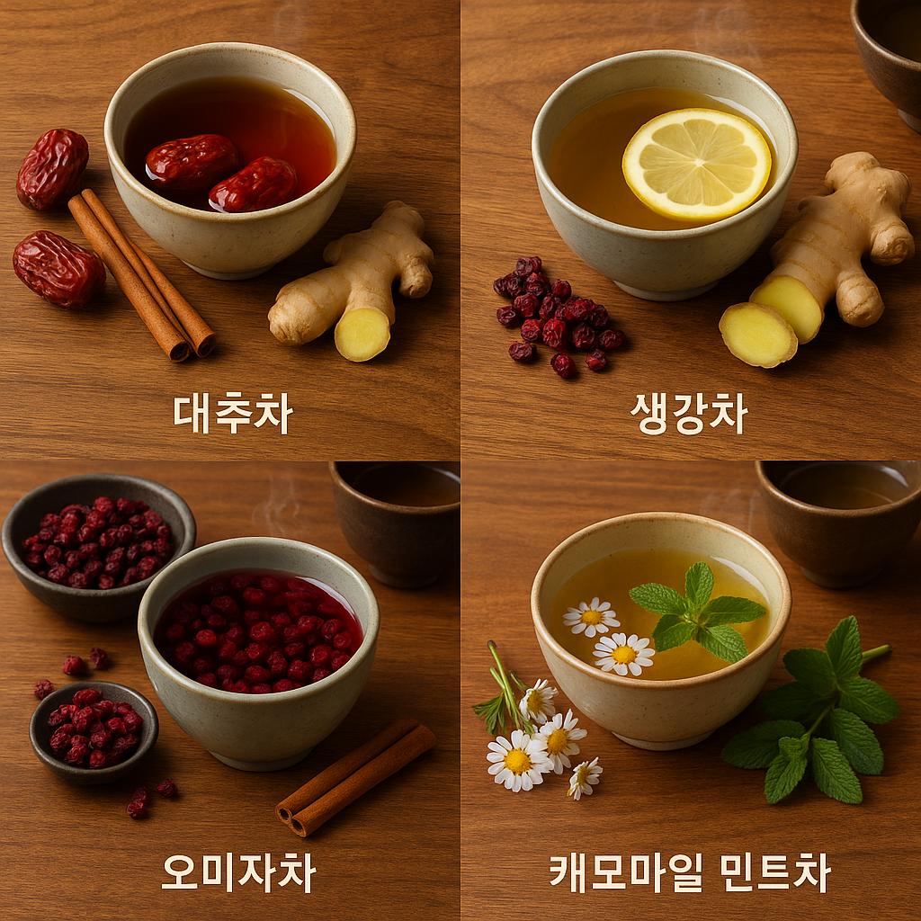환절기마다 감기에 자주 걸리거나 피로감이 지속된다면 오미자차를 꾸준히 마시는 것이 좋습니다. 기침이나 가래가 있을 때는 도라지차를, 몸에 열이 많거나 염증이 있을 때는 국화차가 도움이 될 수 있습니다.