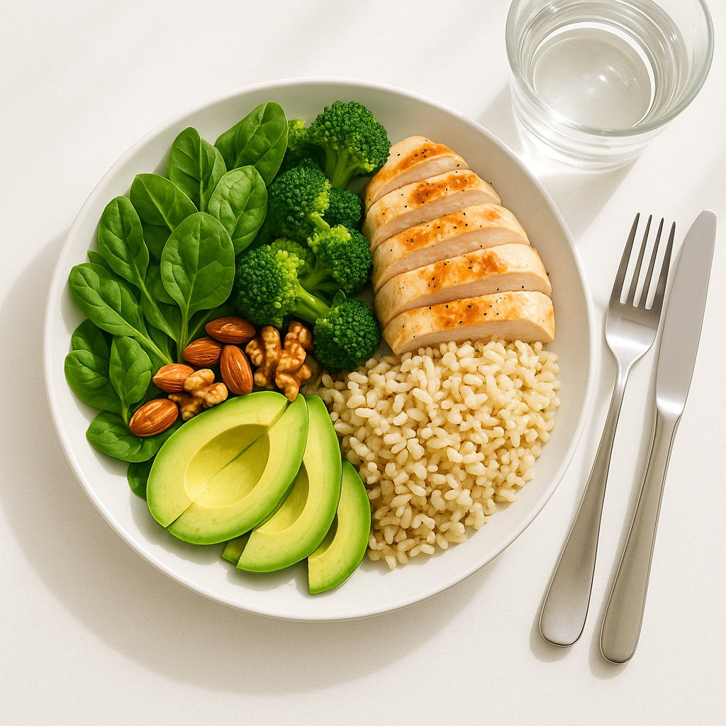 제가 실제로 실천하고 있는 식단 구성 비율은 이래요: 접시의 1/2은 채소, 1/4은 단백질, 1/4은 통곡물, 그리고 건강한 지방 1큰술! 이렇게 하면 자연스럽게 혈당도 안정되고 포만감도 오래 지속돼요.
