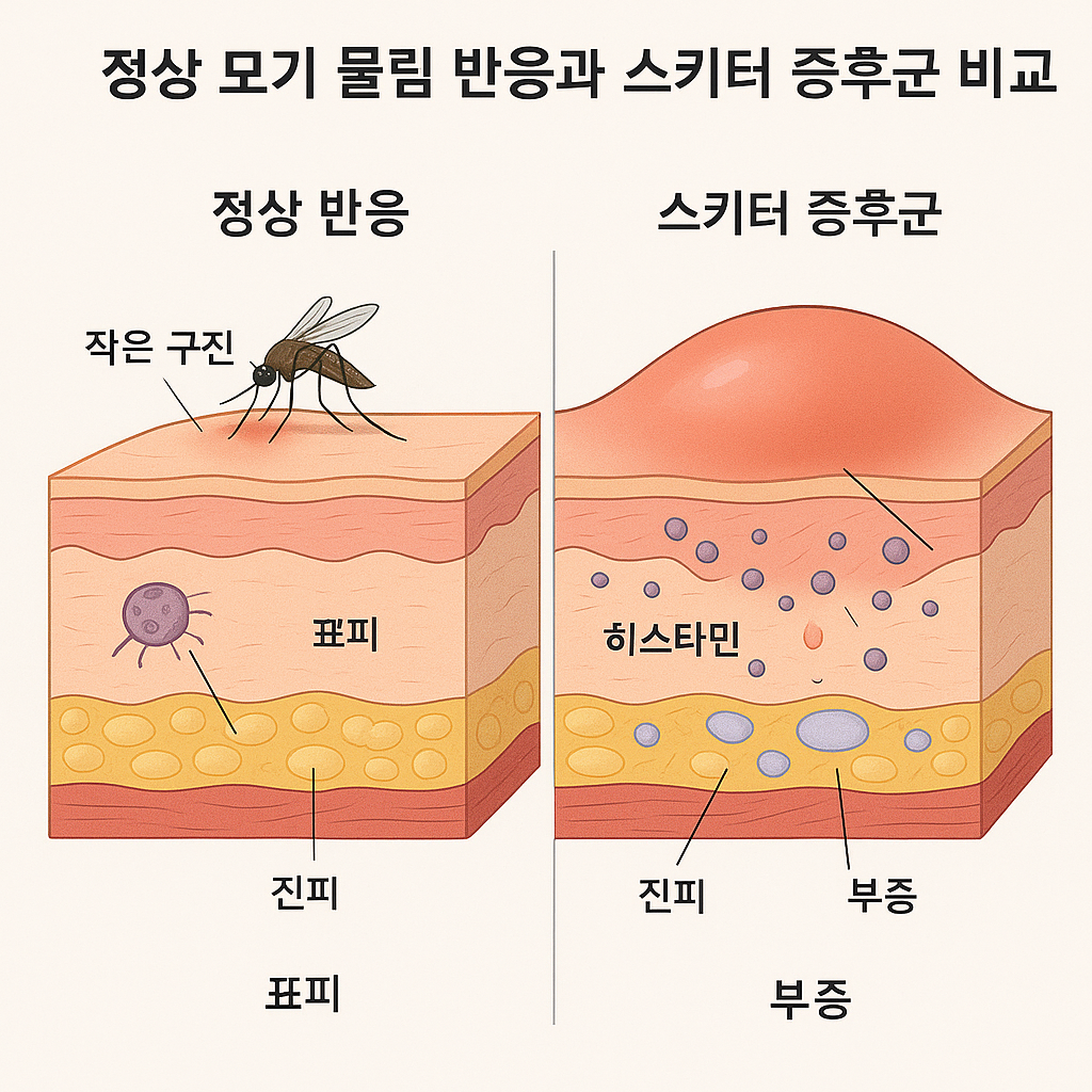 여름철이 되면 모기에 물리는 일이 흔하지만, 대부분의 사람들은 가벼운 가려움과 약간의 부기 정도로 증상이 끝납니다. 하지만 일부 사람들은 모기 물림에 대해 훨씬 심한 반응을 보이는데, 이를 스키터 중후군(Skeeter Syndrome)이라고 합니다. 모기 물림 부위가 심하게 붓고, 열감이 느껴지며, 통증까지 동반되는 경우 이 질환을 의심해볼 필요가 있습니다.