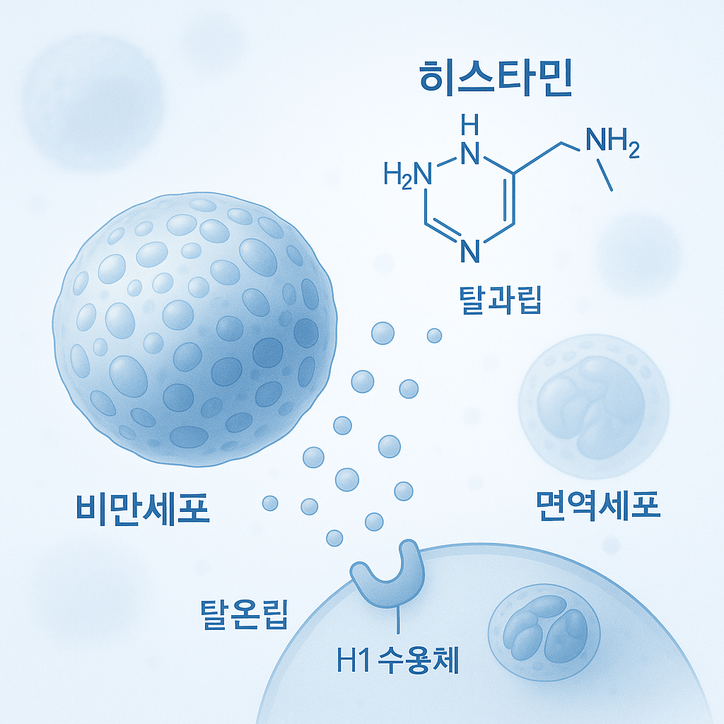 체내에서 히스타민은 주로 비만세포(Mast Cell)와 호염기구(Basophil)에 저장되어 있다가, 특정 자극이 있을 때 분비됩니다. 이러한 자극에는 알레르겐, 물리적 손상, 염증 반응 등이 포함됩니다.